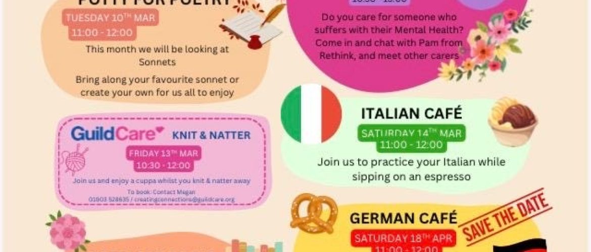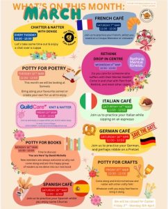 Join us throughout March for a range of friendly social groups, language cafés, and creative activities. Whether you’d like to meet new people, practice a language, enjoy books and poetry, or get creative with crafts, there’s something for everyone.